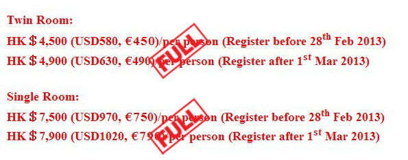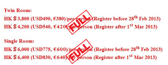 3 Nights Package - 3 nights in The Empire Hotel Kowloon (19, 20, 21 April 2013 only) - Daily Breakfast is included - Registration fee for all the events - No coin drop is required for the games - Welcome Drinks - Special Gift Pack - Dinner Party: Chinese Style Dinner, Free Beer, Whisky and Wine all you can drink, Lucky Draws, Performance, Fun Game Show, MVP Presentation´